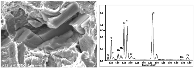 Class B compound inclusions in steel——Zirconia + calcium silicate slag + deoxidizing product calcium aluminatein tundish nozzle